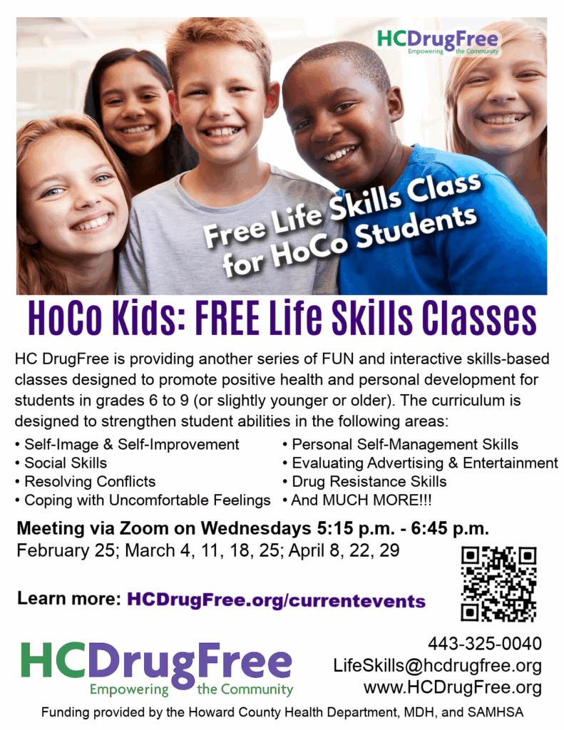 Classes provided by HC DrugFree with funding from the Howard County Health Department, the MD Department of Health, and SAMHSA.